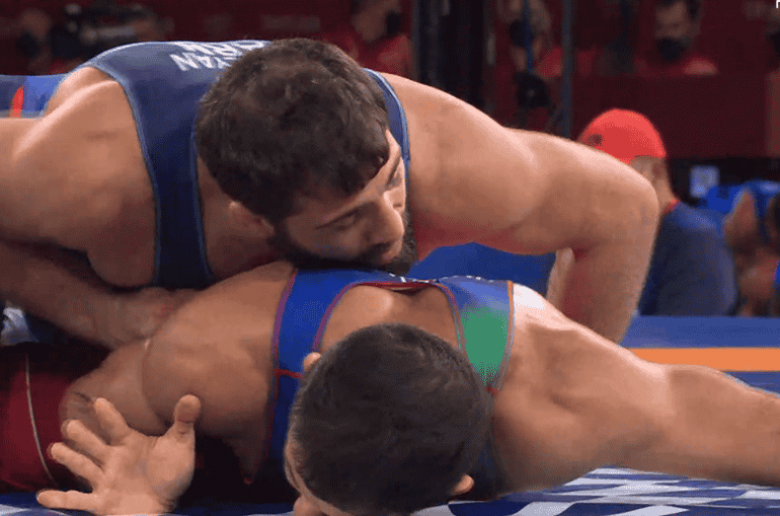Հունահռոմեական ոճի ըմբիշ, 77 կգ քաշային կարգում Հայաստանի ներկայացուցիչ Կարապետ Չալյանը Տոկիոյի Օլիմպիական խաղերում բրոնզե մեդալի համար գոտեմարտեց ադրբեջանցի Ռաֆիգ Հուսեյնովի հետ։