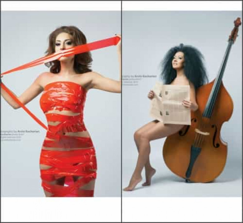 Լուսանկարներում Անին իր մարմինը ծածկել է թերթով, իսկ Էվան՝ սկոտչով՝ ոգեշնչվելով «Սկոտչ եւ Վիսկի» ներկայացումից։