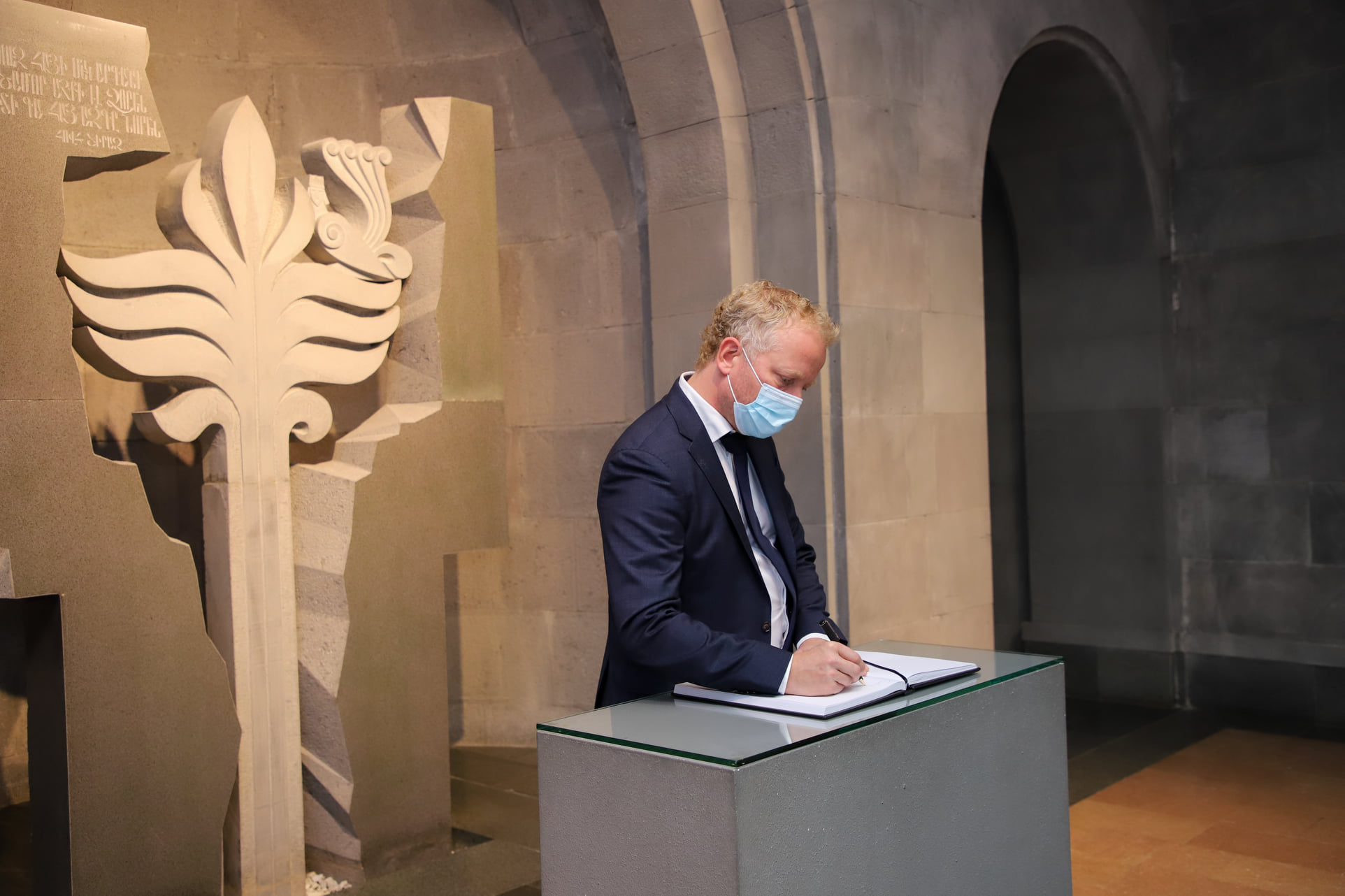 Այցի ավարտին Մարթեն Էհնբերգը գրառում է կատարել Պատվավոր հյուրերի հուշամատյանում: