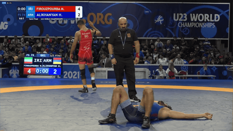 74 կգ քաշային կարգում կիսաեզրափակիչ դուրս եկած Հրայր Ալիխանյանը կպայքարի բրոնզե մեդալի համար: Հայաստանի ներկայացուցիչը եզրափակիչի ուղեգրի համար գոտեմարտում 2:4 հաշվով պարտվեց իրանցի Մոհմադսադեղ Ֆիրուզպուրբանդպեին: