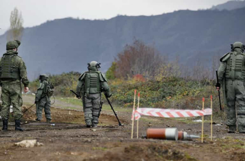 Շուշիի շրջանում սահմանազատման գծի մոտակայքում ռուս խաղաղապահները աշխատանքներ են իրականացնում չպայթած զինամթերքի, արկերի և ականների որոնման ուղղությամբ: Հումանիտար ականազերծման ստորաբաժանման զինծառայողները կատարում են բնակավայրերի և գյուղատնտեսական հանդակների ու արոտավայրերի համար նախատեսված հարակից տարածքների մաքրման աշխատանքներ: