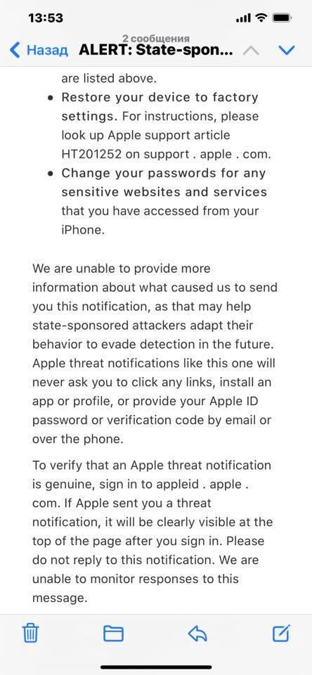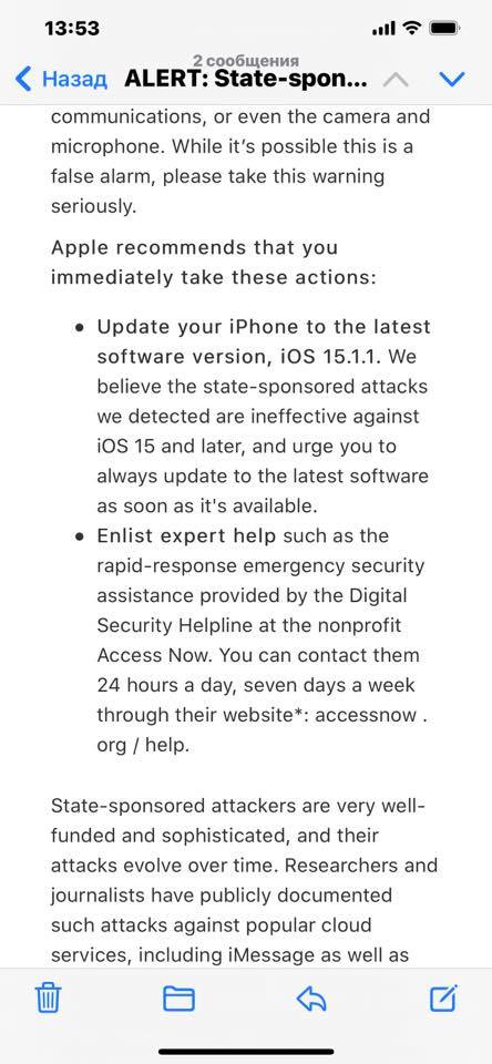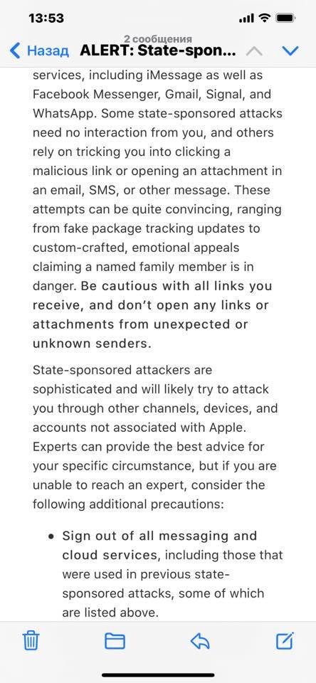 2․ Այս նամակում Apple ընկերությունը հեռախոսն անվտանգ պահելու խորհուրդներ է տալիս, որոնք, իմ համոզմամբ, ենթակա են լայն տարածման։ Իմ, հնարավոր է նաև ՀՀ այլ քաղաքացիների նկատմամբ իրականացված ապօրինի գործողությունների հետ կապված հրավիրում եմ ՀՀ մարդու իրավունքների պաշտպան Արման Թաթոյանի ուշադրությունը։