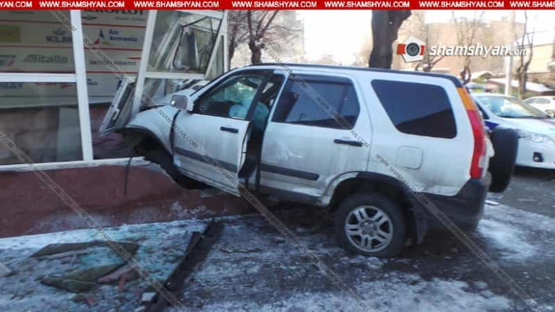 Խոշոր ավտովթար Երևանում.Honda-ն մխրճվել է բելառուսական ավիաընկերության գրասենյակի մեջ. կան վիրավորներ. ՖՈՏՈՌԵՊՈՐՏԱԺ