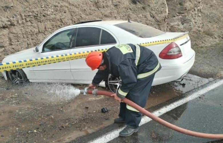 Փրկարարները հոսանքազրկել են ավտոմեքենան, փակել գազի բալոնի փականը և կատարել ճանապարհի լվացման աշխատանքներ։