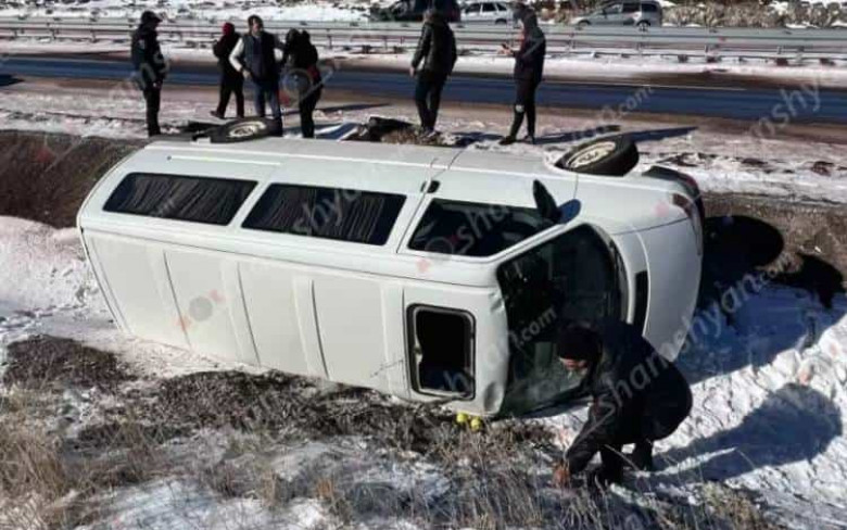 Volkswagen-ը մերկասառույց ճանապարհի պատճառով կողաշրջվել է. հղի կին է եղել ավտոբուսում