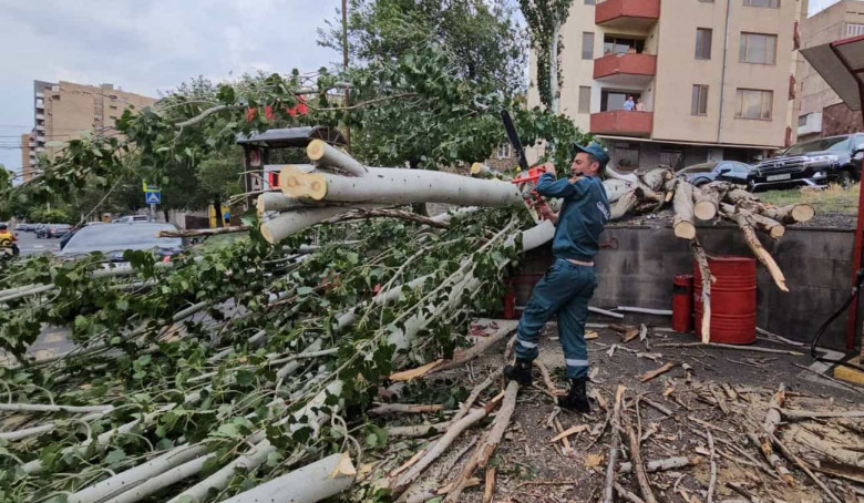 ՀԱՍԱՐԱԿՈՒԹՅՈՒՆՀունիսի 29-ին՝ ժամը 09:12-ից 19:43-ը, Ճգնաժամային կառավարման ազգային և մարզային ճգնաժամային կառավարման կենտրոններ ահազանգեր են ստացվել, որ քամու հետևանքով Երևանի Արաբկիր, Դավթաշեն, Աջափնյակ, Էրեբունի, Մալաթիա-Սեբաստիա, Նոր Նորք, Կենտրոն վարչական շրջաններում և Արմավիրի մարզի Վաղարշապատ, Լոռու մարզի Վանաձոր քաղաքներում վնասվել են շինությունների տանիքներ և կոտրվել են ծառեր: