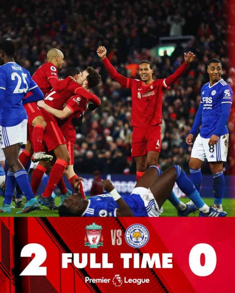 В рамках 24-го тура чемпионата Англии «Ливерпуль» на своем поле обыграл «Лестер Сити» со счетом 2։0. Автором дубля стал португальский нападающий Диогу Жота.