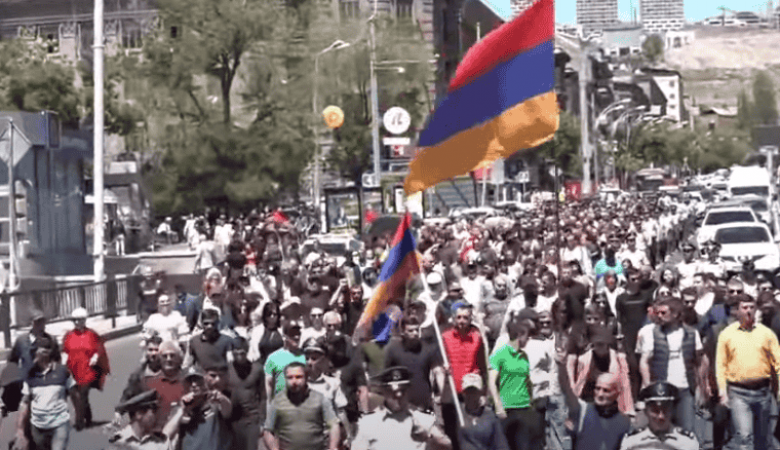 Сторонники Движения сопротивления 26 мая шествием направились от здания Высшего судебного совета Армении в сторону Площади Франции.