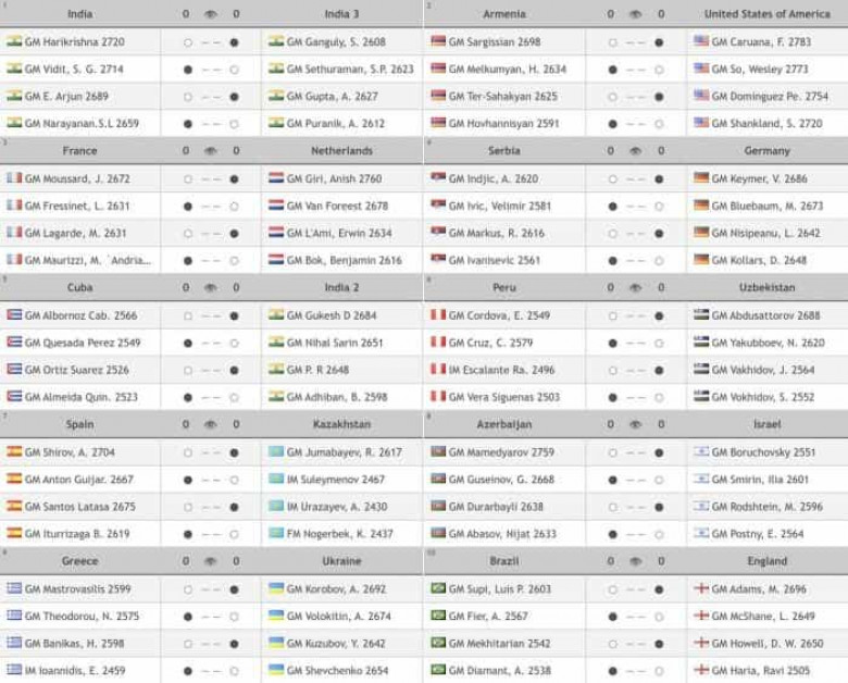 В предыдущих турах сборная Армении обыграла Мадагаскар (4:0), Андорру (3:1), Египет (2,5:1,5), Австрию (3:1), Англию (2,5:1,5), вторую команду Индии (2,5:1,5) и с 12-ю очками возглавляет турнирную таблицу. Сборная США идет на втором месте - 11 очков.
