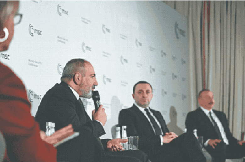 Ng.ru-ն գրում է, որ Ադրբեջանի նախագահ Իլհամ Ալիևը և Հայաստանի վարչապետ Նիկոլ Փաշինյանը Մյունխենի անվտանգության 59-րդ համաժողովի շրջանակներում հանդիպել են։ Հանդիպումը կայացել է ԱՄՆ պետքարտուղար Էնթոնի Բլինքենի ակտիվ միջնորդությամբ և մասնակցությամբ։ Բանակցությունները երևում է արդյունավետ չեն եղել, դրանց մասնակիցների ակտիվին կարելի է ավելացնել միայն ինքնին հանդիպման փաստը։ Բանակցությունների ավարտից անմիջապես հետո ՀՀ կառավարության մամուլի ծառայությունը տեղեկատվություն է տարածել, որ Ալիևն ու Փաշինյանը քննարկել են միջպետական ​​խաղաղության պայմանագրի նախագծի շուրջ աշխատանքների ընթացքը, տարածաշրջանային տրանսպորտային ենթակառուցվածքների ապաշրջափակման և սահմանի սահմանազատման հարցերը։ Ադրբեջանական կողմը մեջբերել է Իլհամ Ալիևին, ով նշել է խաղաղության միջպետական ​​համաձայնագրի վերաբերյալ Հայաստանի դիրքորոշման որոշակի առաջընթացը, որը «սակայն բավարար չէ»։
