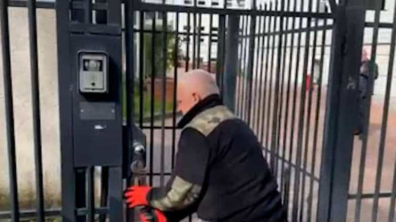 Դրանից հետո հատուկ հրավիրված ծառայությունները սկսել են կոտրել դարպասը։ Որոշ ժամանակ անց նրանց դա հաջողվել է, և նրանք ներխուժել են շենք, ապա դարպասից կողպեքով շղթա են կախել, որպեսզի գույքը չկարողանան դուրս բերել դպրոցից։