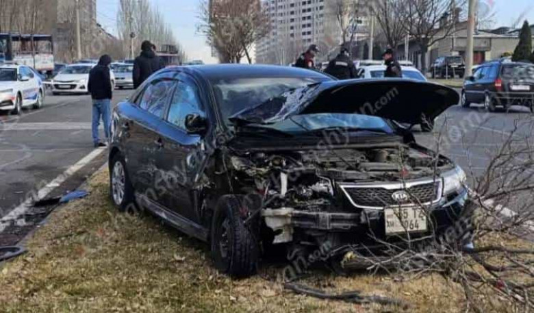 Բախման հետևանքով Kia-ն դուրս է եկել երթևեկելի գոտուց և հայտնվել բաժանարար գոտու կանաչ գազոնում: