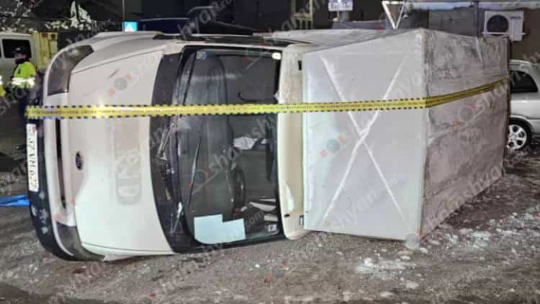 Խոշոր վթար՝ Երևանում․ Ford Transit-ը մերկասառույցի պատճառով կողաշրջվել է, վիրավոր կա