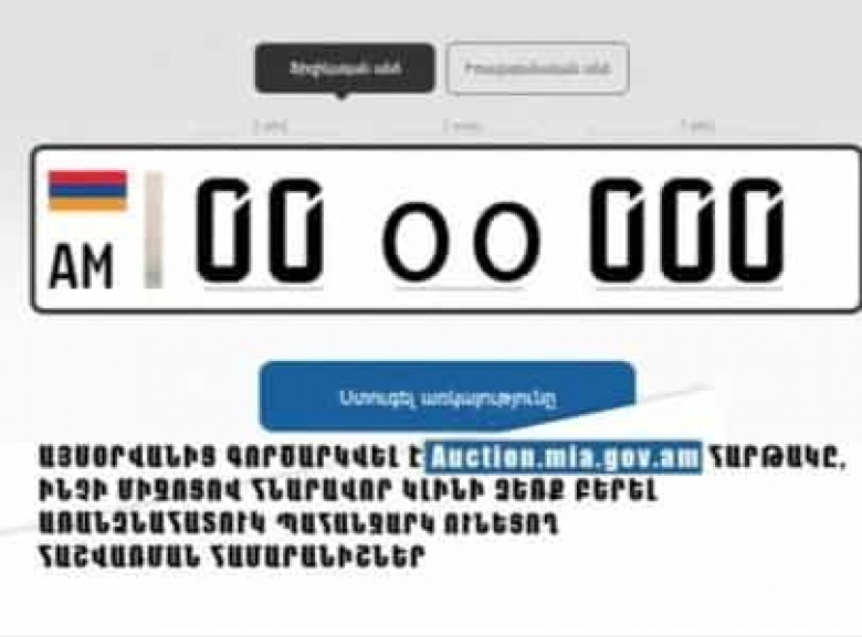 Գործարկվել է Auction.mia.gov.am հարթակը. հնարավոր կլինի ձեռք բերել առանձնահատուկ տեսակի հաշվառման համարանիշներ