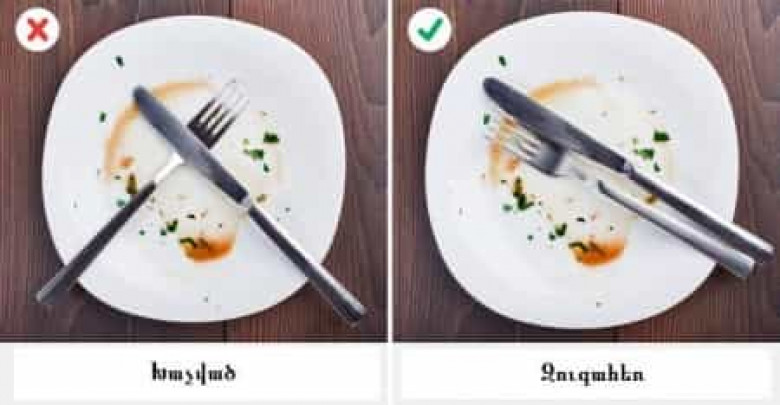Ինչպես դանակ-պատառաքաղը թողնել ափսեի մեջ ուտելուց հետո