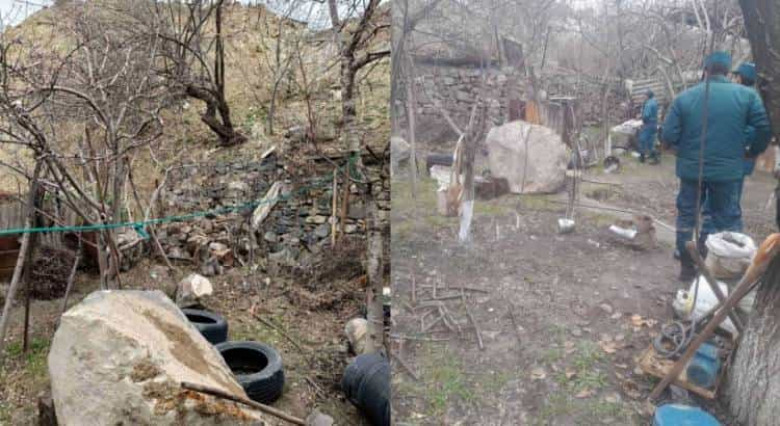 Պարզվել է, որ տան հարակից լանջից տեղի է ունեցել քարաթափում, ինչի հետևանքով մոտ 2 խմ քարային զանգված հայտնվել է տան բակում․ տուժածներ չկան։
