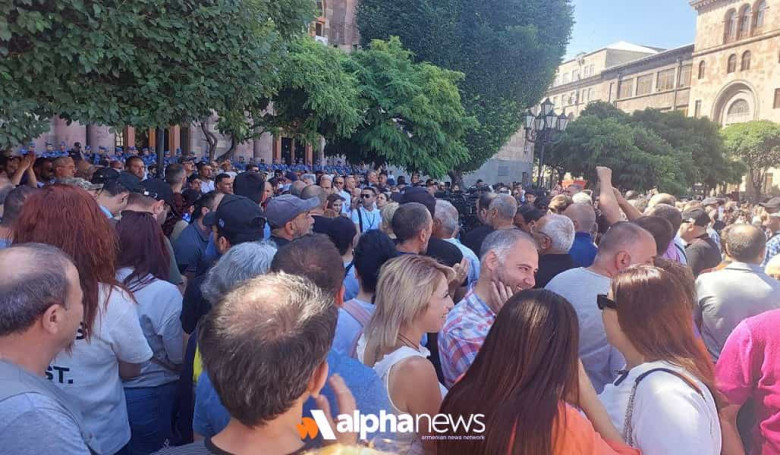 Требующие отставки премьер-министра Армении граждане во главе с архиепископом Багратом Галстаняном находятся перед зданием правительства РА.