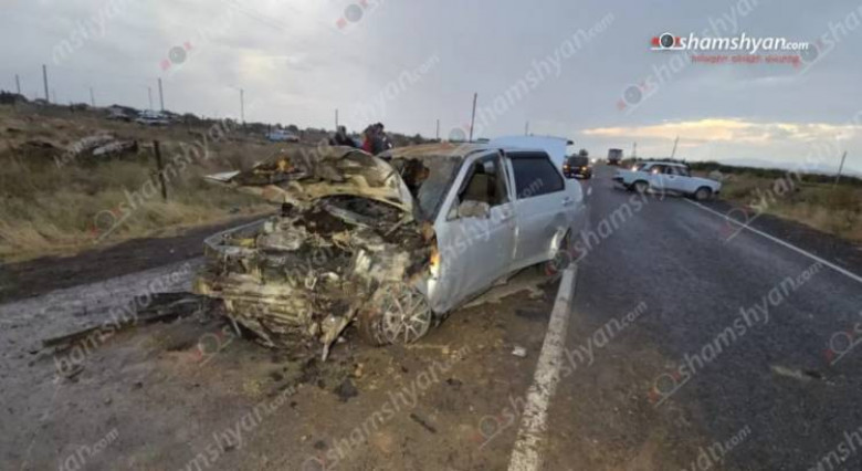Ավտովթար-հրդեհ՝ Արագածոտնում․ բախվել են «ՎԱԶ 2107»-ն ու «Lada»-ն, հրդեհ է բռնկվել, 3 վիրավnր կա
