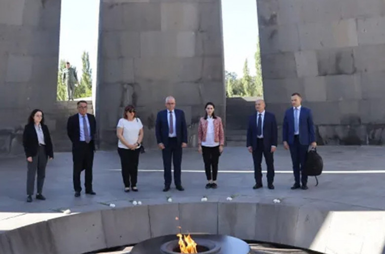 Հյուրերին դիմավորել է Հայոց ցեղասպանության թանգարան-ինստիտուտի թանգարանային աշխատանքների գծով փոխտնօրեն Լուսինե Աբրահամյանը: Նա հյուրերին ուղեկցել է դեպի Հայոց ցեղասպանության հուշահամալիր՝ ներկայացնելով հուշահամալիրի ստեղծման պատմությունը: ՀՑԹԻ փոխտնօրենն անդրադարձ է կատարել նաև Ծիծեռնակաբերդի տարածքում անցյալ դարավերջին Ադրբեջանի Սումգայիթ, Կիրովաբադ (Գանձակ), Բաքու քաղաքներում ադրբեջանական կառավարության կազմակերպած կոտորածներին զոհ գնացած հայերի հիշատակին տեղադրված երեք խաչքարի և Արցախյան գոյամարտի տարիներին Հուշապատի դիմացի հատվածում հուղարկավորված հինգ ազատամարտիկի պատմություններին՝ շեշտելով կապը տեղի ունեցածի և Հայոց ցեղասպանության միջև: