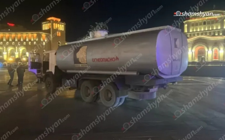 Արտակարգ դեպք՝ Երևանում․ բենզին տեղափոխող բեռնատարը մտել է Հանրապետության հրապարակ ու այն կայանել արգելված վայրում