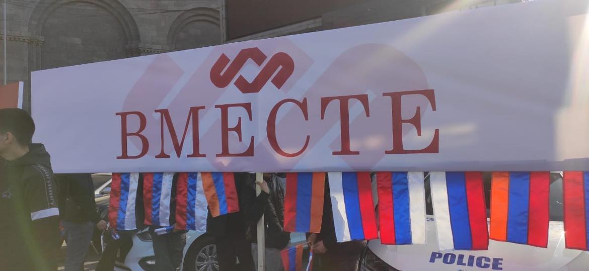 Кортеж последнего на мосту Победы встретили более тысячи граждан с плакатами «Мместе» и «Добро пожаловать». Организатором акции выступил общественно-политический деятель, руководитель общественного движения «Моя страна, моя Армения», председатель правления Российско-армянского делового совета Мгер Аветисян.