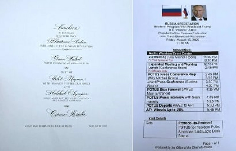 Документы содержали подробности саммита: точные места и время встреч, контактные номера сотрудников, а также описание официального ланча «в честь Его Превосходительства Владимира Путина». В материалах упоминался подарок — настольная статуэтка с изображением белоголового орлана.
