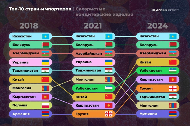 Армения попала в десятку крупнейших импортеров сахаристых кондитерских изделий из России