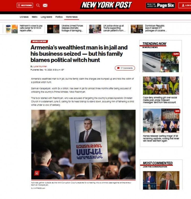 Известная и, что немаловажно, широко распространенная американская газета «Нью-Йорк пост» довольно подробно коснулась позорной ситуации со свободой слова и антидемократическими аспектами, царящей в Армении: