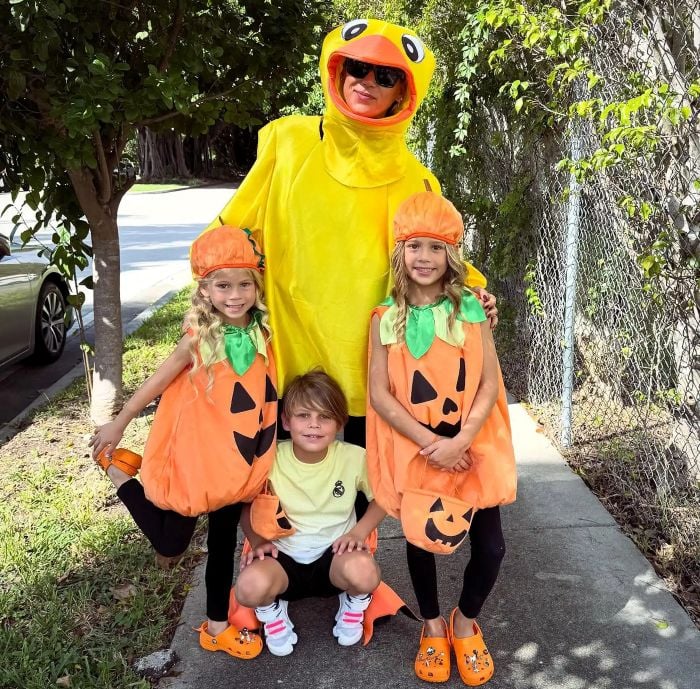 44-летняя Курникова опубликовала в Instagram фото, на котором она и трое её детей готовятся к Хэллоуину. Анна была в ярком желтом костюме утки с черными штанами, её дочери Люси, 7 лет, и Мэри, 5 лет, нарядились в одинаковые оранжевые костюмы тыквы с шапочками и оранжевыми кроксами, а сын Николас, 7 лет, выбрал более повседневный образ — желтую футболку с градиентом и черные шорты.