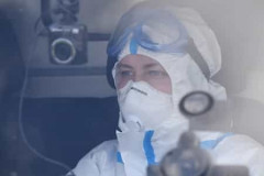 Մոսկվայում կորոնավիրուսով հիվանդներին տեղափոխող շտապօգնության մեքենաների հերթ է ...