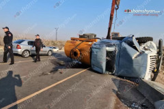 Երևան-Գյումրի ավտոճանապարհին դիզվառելիք տեղափոխող բեռնատարը բախվել է արգելապատնե...