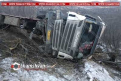Բեռնատար ավտոմեքենան Որոտանի հատվածում դուրս է եկել ճանապարհի երթեւեկելի գոտուց ...