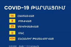 Արցախում թեստավորվել է 434 քաղաքացի, վարակվածների թիվը 14 է, մեկուսացման մեջ է 2...