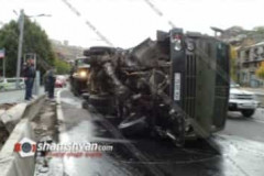 Խոշոր ավտովթար Մյասնիկյան պողոտայում. «ԿամԱԶ»-ը շրջվել է. մեծ խցանում է առաջացել