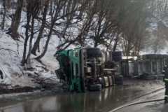 Վերին Լարս տանող ճանապարհին գազատար բեռնատար է կողաշրջվել և այրվել