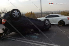 Խոշոր ավտովթար Երևանում. բախվել են Opel-ն ու Infiniti-ն, Opel-ը գլխիվայր շրջվել է
