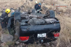 Արագածոտնում «BMW»-ն դուրս է եկել երթևեկելի գոտուց, գլխիվայր հայտնվել դաշտում