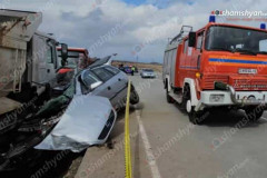 Opel-ը բախվել է եզրաքարին,ապա՝ բեռնատար Howo-ին, հետո՝ մխրճվել մեկ այլ բեռնատարի...