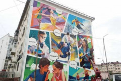 Նկարիչ Սուրեն Դավթյանը Մագադանի շենքի ճակատային հատվածում 16 մետրանոց մուրալ է ս...