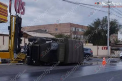 Երևան-Մեղրի ավտոճանապարհին բեռնատար է կողաշրջվել (լուսանկարներ)
