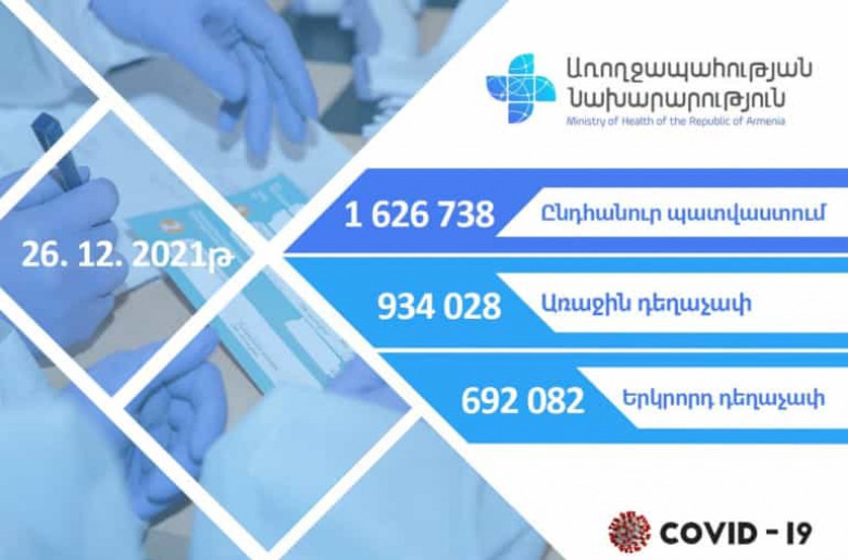 Դեկտեմբերի 26-ի դրությամբ ՀՀ-ում կատարվել է 1626738 պատվաստում։