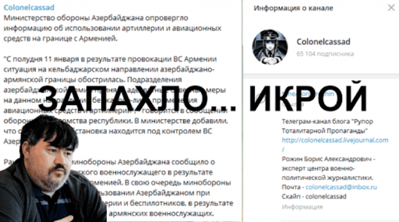 infoteka24.ru-ն գրում է, որ Ռուսական հեռագրային այս ալիքի հեղինակ Բորիս Ռոժինը, ով իրեն համարում է «ռազմաքաղաքական լրագրության կենտրոնի» փորձագետ, հրապարակել է Ադրբեջանի պաշտպանության նախարարության հաղորդագրությունը, որով հերքվել է Գեղարքունիքի մարզի ուղղությամբ անօդաչու թռչող սարքերի և հրետանու կիրառումը։ Իսկ այն ինչի մասին հայտնել է Հայաստանի պաշտպանության նախարարությունը՝ չի գրվել։ Խնդիրն այն է, որ այդ «փորձագետը», չհրապարակելով հայկական կողմի հաղորդագրությունը, անմիջապես հրապարակել է ադրբեջանական հերքումը այդ հրապարակման վերաբերյալ։