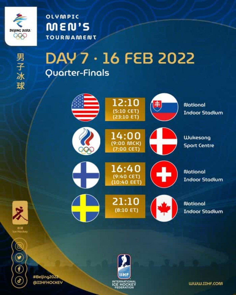 Պեկին-2022. Հոկեյի տղամարդկանց մրցաշարի քառորդ եզրափակիչի զույգերը