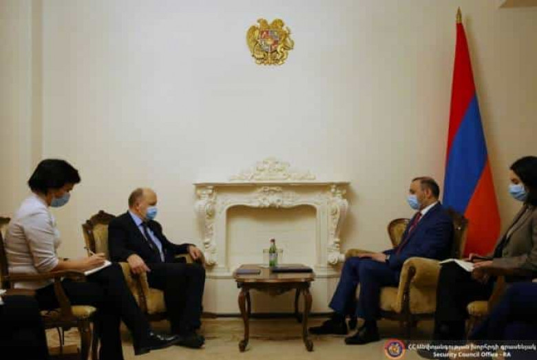 Հանդիպման ընթացքում կողմերը մտքեր են փոխանակել տարածաշրջանային և միջազգային անվտանգության ու կայունության հարցերի շուրջ: ԱԽ քարտուղարն իր զրուցակցին է ներկայացրել ՀՀ դիրքորոշումները տարածաշրջանում կայունության և ԼՂ հակամարտության երկարաժամկետ կարգավորման, տարածաշրջանային բոլոր հաղորդակցման ուղիների ապաշրջափակման, հայ-ադրբեջանական սահմանի սահմանագծման և սահմանազատման վերաբերյալ: