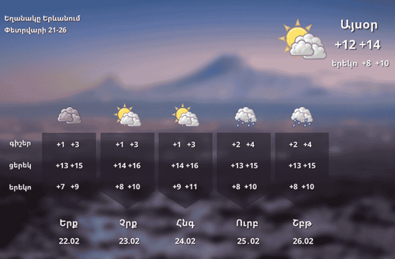 Օդի ջերմաստիճանը փետրվարի 21-24-ի ցերեկը կբարձրանա 2-4 աստիճանով