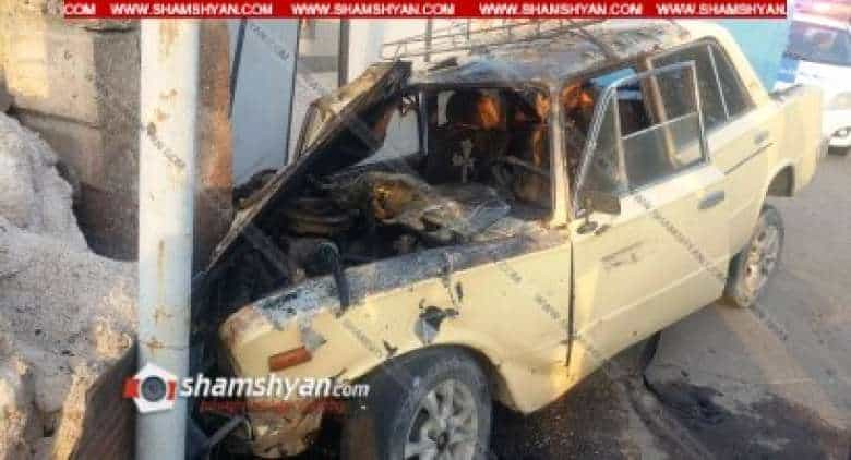 Աբովյանում մեքենան բախվել է պատին, ինչից հետո հրդեհ է բռնկվել. ամուսինները հոսպիտալացվել են