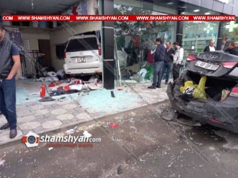 Արմավիրում. Lexus-ը բախվել է 07-ին, այնուհետև Hyundai Elantra-ին և մխրճվել հագուստի խանութի մեջ. կա վիրավոր