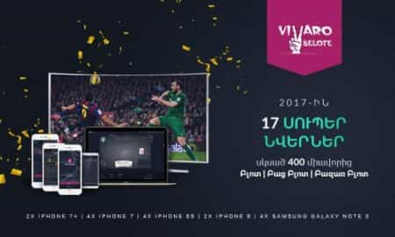 ԱՄԵՆԱԸՆԹԵՐՑՎԱԾՎիվառոյի կազմակերպված ակցիան, որտեղ խաղարկվում էին 2017թ. խորհրդանշական 17 թանկարժեք նվերներ, մեկնարկել էր դեռ անցած տարի: Արժեքավոր մրցանակները խաղարկվեցին Վիվառո Բլոտում: Ակցիայի գործող ժամանակահատվածում բոլոր մասնակիցները խաղալու էին Բլոտ, Բաց Բլոտ և Բազար Բլոտ 2500 դրամից սկսած սեղաններում և հավաքելու էին միավորներ: Առավելագույն միավորներ հավաքած ինը մասնակիցները միանգամից կարժանանան մրցանակների, իսկ մնացած ութ նվերները միմյանց միջև կխաղարկեն օնլայն մրցաշարի հաղթողները: Վիվառո Բլոտը խաղարկում էր հեռուստացույց, Macbook, iPhone7, iPhone7+ և iPhone6S հեռախոսն Եվ ահա, եկել է պահը, երբ բոլոր տասնյոթ թանկարժեք նվերները գտնելու են իրենց տերերին: Վերջին խաղերը տեղի են ունենալու Ծաղկաձորում` Vivaro Gaming Club-ում: