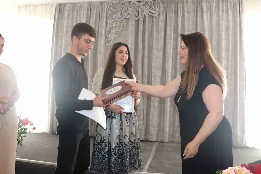 Նոյեմբերյանի Քաղաքային գրադարանում այսօր տոնական մթնոլորտ էր. «Սինկոպա» վոկալ համույթը դեպի մեծ բեմեր ճանապարհեց առաջին շրջանավարտներին՝ Արփի Ապրիկյանին և Արեն Վերանյանին: