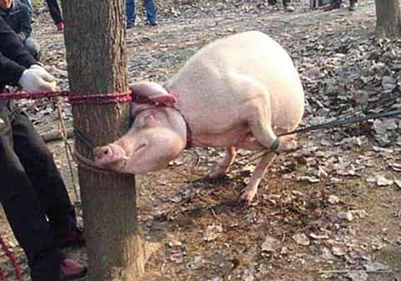 Այս խոզին դաժանաբար մորթեցին. իմանալով՝ ինչ է արել, դու էլ նույնը կանեիր